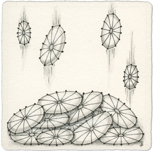 Today’s tangle is Festune. It looks a bit like a fancy cushion that you might use to decorate your living room. Depending on how you draw them, they might look a bit like a paper umbrella! I love to draw them piling up as if they were thrown or dropped into a haphazard pile.