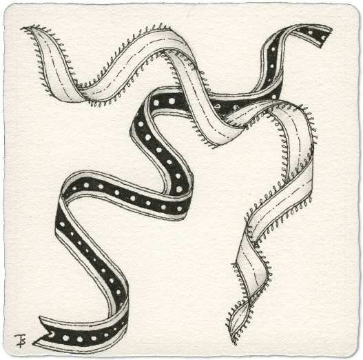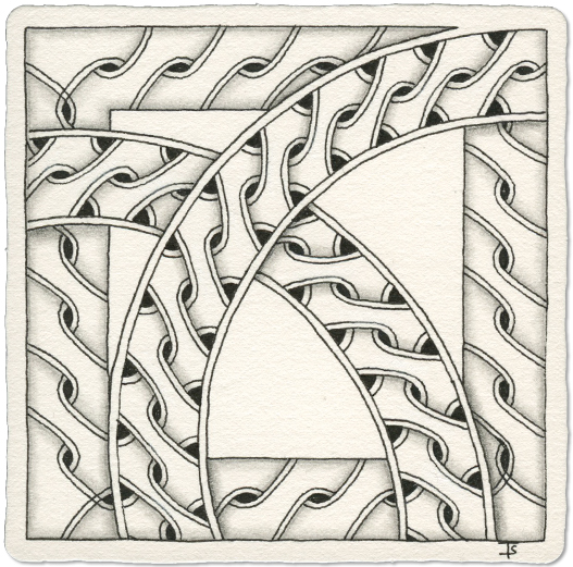 This tangle could be used as a border, a ribbon, or a medallion. I can even see how it might fill a section of a multi tangle tile.