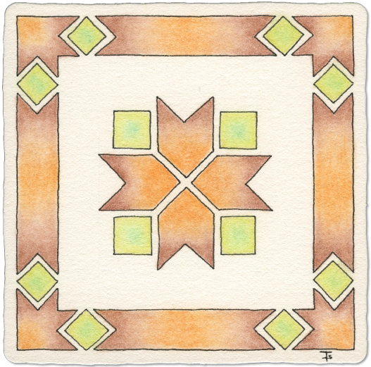 This is a totally new tangle to me. I had never heard of it until I saw it on the Inktober Tangles list. It reminds me of Native American designs or quilt designs.