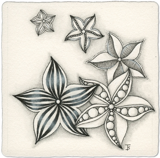 In terms of Zentomology, StarRite is a bottanical, medallion type of tangle. It’s not difficult to draw, but there’s lots of room for embellishment.