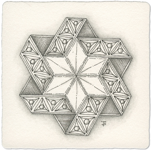 Chomborós is a tangle that produces a beautiful, bordered, 6-pointed star. It is important to follow the Step-Out carefully for the best results.