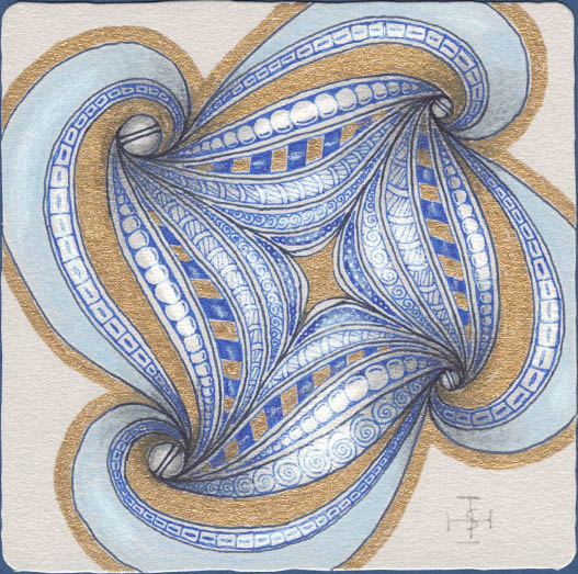 Zentangle drawn on Official Zentangle tile using a blue, Micron pen.