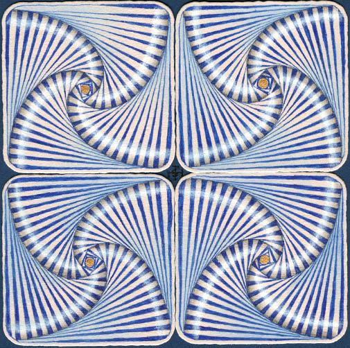 I actually started this project a couple of days ago, but didn’t get it finished until this evening! These small tiles have a lot of line work, and I had a lot of interruptions. With all that, I think the effort was well worth it! Playing with them to create different Meta Patterns is fun and gives you even more ideas of way to play with this tangle!