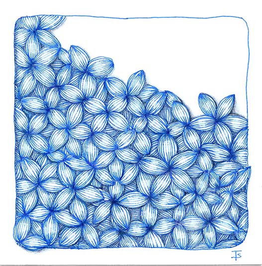 This one is more complex than yesterday’s tile. I was sorting through my old Micron pens to see what worked, and what didn’t. I found a blue, 01 pen and decided I would use that for today’s tangling.