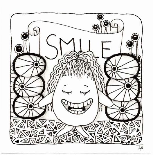 Since I’ve been tangling evey day, I decided to create an illustration tile, using tangles to create a picture that is less abstract than normal. I wanted to capture the feeling of going to school and showing off her new smile to all of her friends and classmates.
