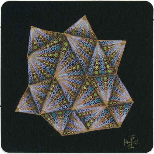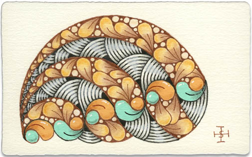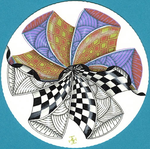 I absolutely love Martha’s version of Tripoli on this project! She says it was inspired by a trip to the local aquarium with her kids. While it doesn’t exactly look like a jellyfish, it certainly invokes the “feeling” of them! I am keeping this tangle in my repertoire.