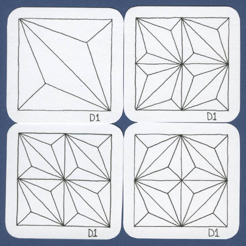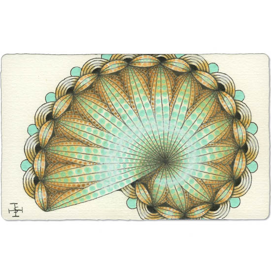 This style of tangle can be used as a frame or border. They can appear between other tangles to separate them from each other, or used as an accent to fill in behind focal points.
