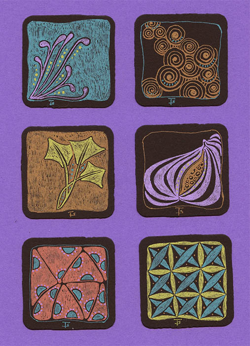 I chose the Sand Swirl tangle for the background to act as a contrast to the individual motifs.