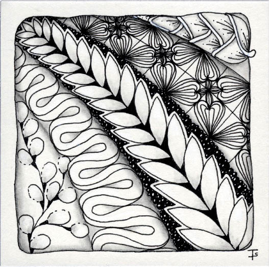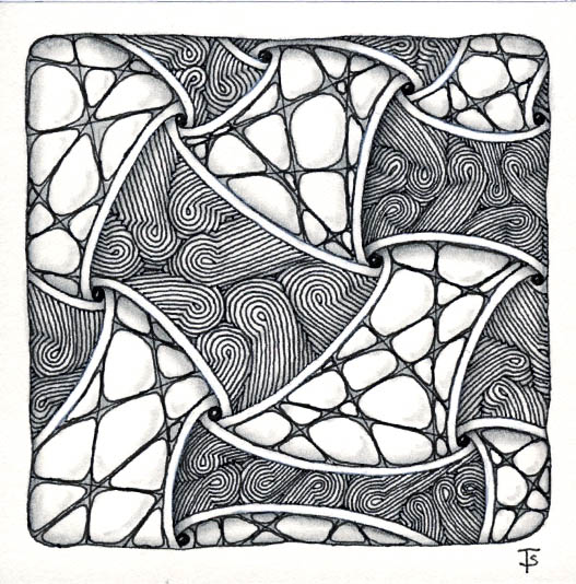 When I was first learning to tangle, Sandy Steen Bartholomew was one of the few people who had published books on the subject. She has a very unique style, which I found fun and engaging. In particular, her Btl Joos I really loved.