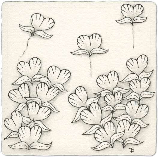 Poke Heart is a lovely, flowing botannical tangle that can be used as a fill, ribbon, border, or vine. It offers lots of tangling possibilities.